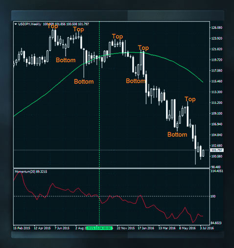 该指标衡量价格变化的速度。换而言之,价格上涨或下跌有多快。在动能指标中,均衡线是100。当价格加速变化且震荡指标上穿均衡线,新的上升趋势开始–这是积极的信号。反之亦然,价格走势放慢且动能指标下穿均衡线,在这种情况下,它是显示下跌趋势的负面信号。